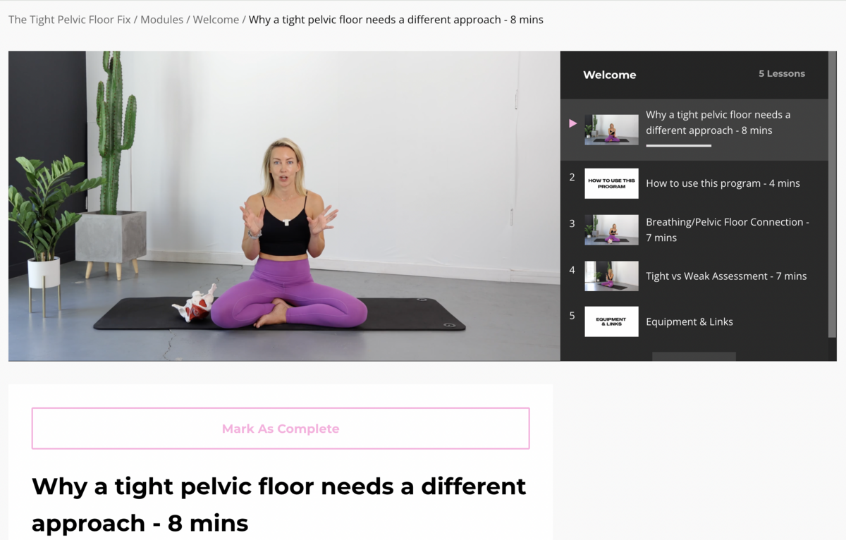 You'll have a maintenance routine to continue progress plus lifetime access to return to any section whenever needed. Most women find they can self-manage symptoms going forward with the tools they've learned. For full body pelvic floor friendly workouts, see my other programs. Many women do the Tight Pelvic Floor Fix first before moving on to either the Mama or Meno Method.